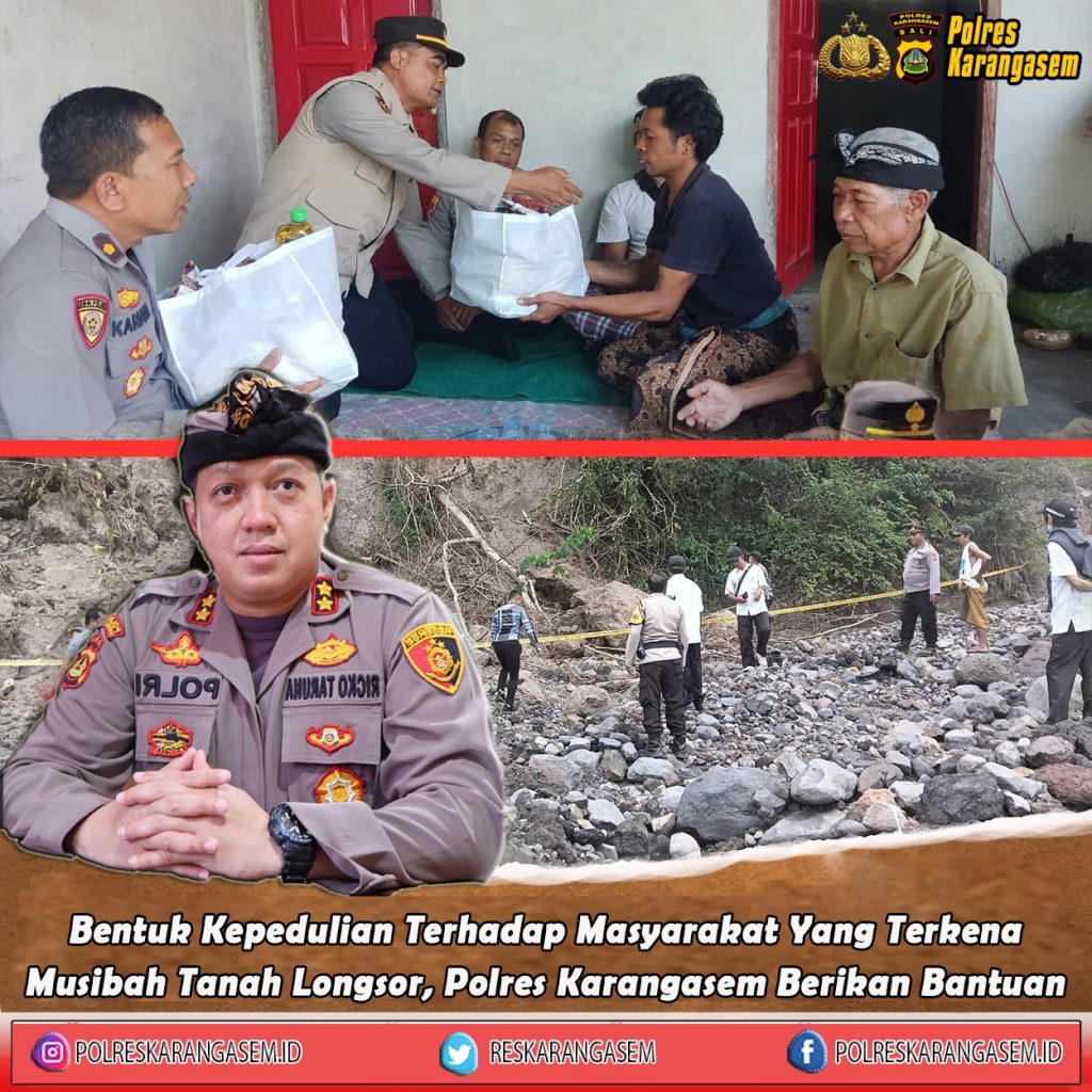 tujuan dari pemberian sembako di terangkan oleh Kapolres Karangasem secara terpisah, dari apa yang mereka derita dari musibah tersebut dengan memberikan bantuan yang bertujuan untuk meringankan beban dari keluar korban yang tertimbun tanah longsor saat melakukan aktifitas pekerjaannya sehari-hari.