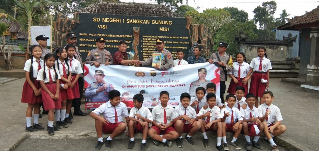 Dalam pendistribusian buku tersebut Kapolsek di dampingi Waka Polsek Sidemen Ipda I Made Kaya Arcana, Bhabinkamtibmas Sangkan Gunung beserta Anggota Polsek untuk menyerahkan buku sebanyak kurang lebih 75 buku terdiri dari buku cerita anak, buku pengetahuan serta buku agama yang diterima Kepala Sekolah di dampingi para guru.