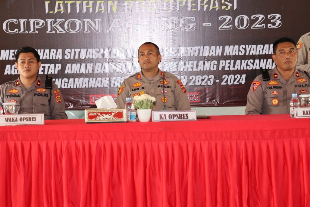 Pelaksanaan giat LAT PRA OPS CIPKON AGUNG-2023 dalam rangka memelihara Sitkamtibmas agar tetap aman dan kondusif menjelang pelaksanaan pengamanan Tahapan Pemilu 2023-2024 yang dibuka oleh Kapolres Tabanan AKBP Leo Dedy Defretes, S.H., S.I.K., M.H. Senin (18/9/2023) pukul 09.30 s/d 10.00 Wita bertempat di Aula Wisnu Hartono Polres Tabanan.