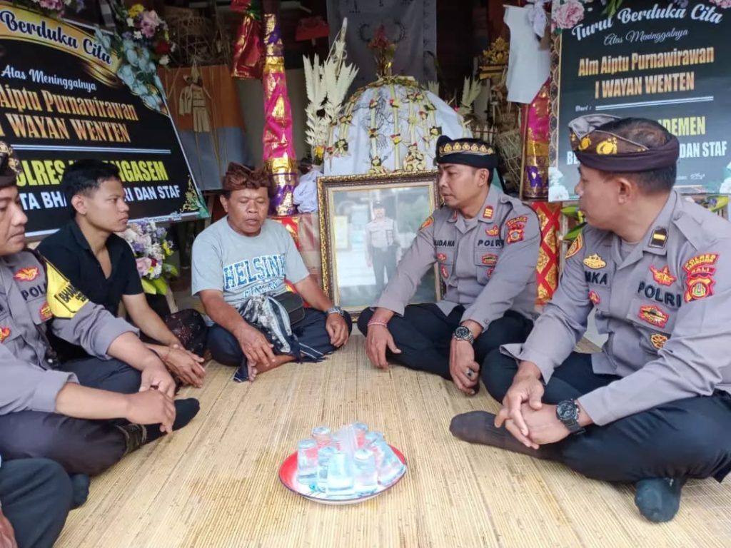 Kedatangan Kapolsek bersama Anggota untuk melayat ini, sebagai wujud rasa empati dari pihak Polsek Sidemen kepada Almarhum yang meninggal Dunia karena sakit.