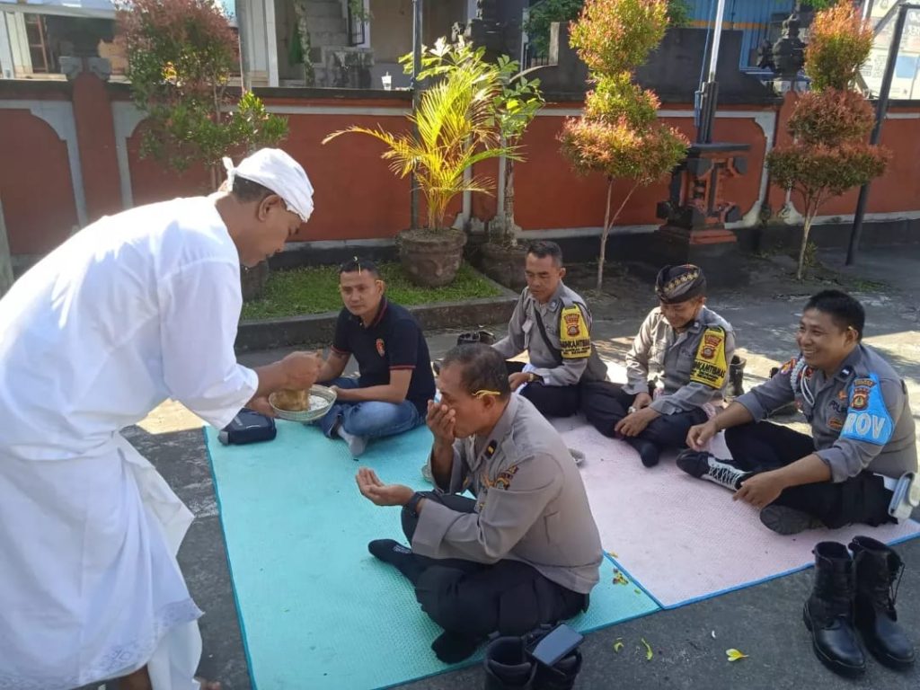 Persembahyangan yang dipimpin Wakapolsek Ipda I Made Kaya Arcana diikuti oleh Personil Polsek Sidemen dipuput oleh Jro Mangku I Wayan Geria, bertujuan untuk memohon kesehatan dan terciptanya situasi Kamtibmas yang aman dan kondusif di wilayah Sidemen.