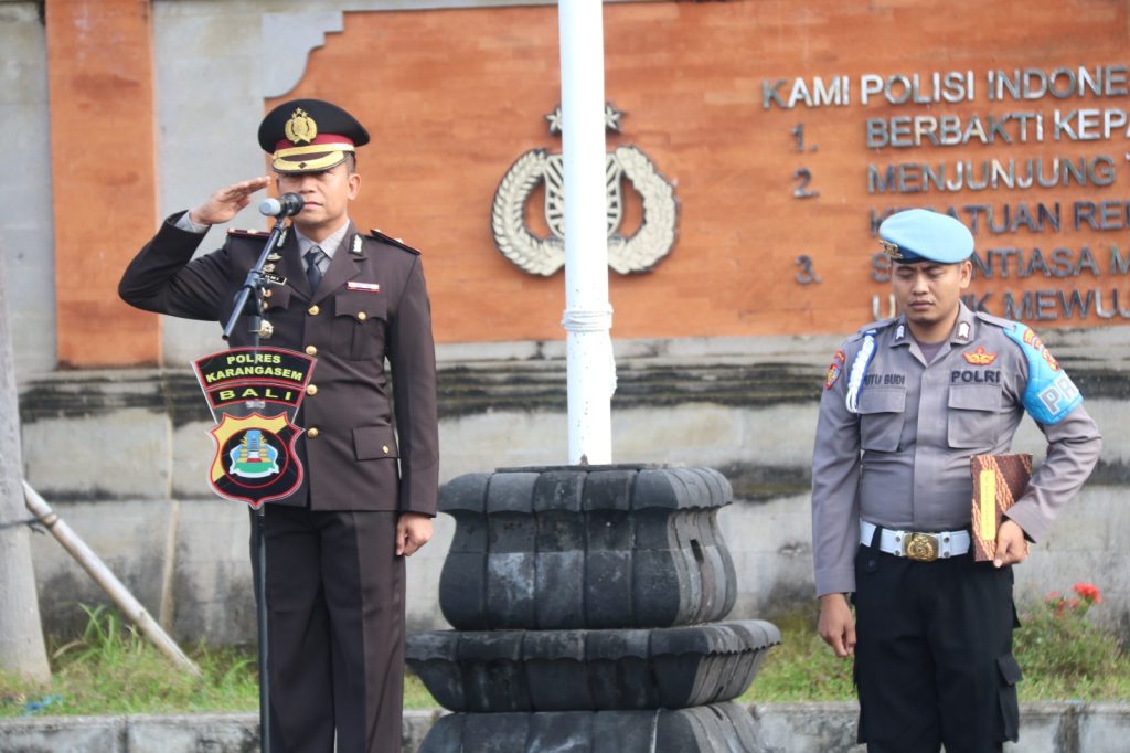 Upacara Hari Kesaktian Pancasila yang dipimpin oleh Wakapolres Karangasem Kompol Fachmi Hamdani, S.Psi., S.I.K., dengan tema upacara “Pancasila Pemersatu Bangsa Menuju Indonesia Maju”.