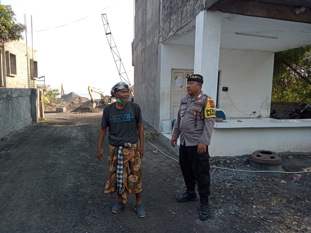 Polisi Banjar yang bertugas di Banjar Dinas Darmawinangun Desa Tianyar Timur Bripka I Gede Sudiarta melaksanakan giat sambang dan temui pecalang adat di lokasi Portal Pasir Toya Anyar Desa Tianyar Kubu Karangasem. Rabu (11/10/2023)