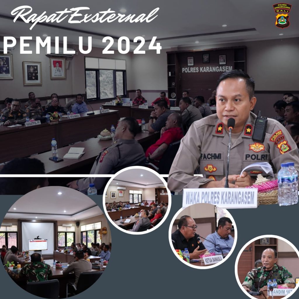 Wakapolres Karangasem pada intinya menyampaikan Puji syukur kita panjatkan kehadapan Tuhan yang Maha Esa atas Rahmat Beliau kita masih diberikan kesempatan untuk berkumpul bersama dalam kegiatan Rapat Koordinasi Eksternal Dalam Rangka Persiapan Pemilu Tahun 2024 di Kabupaten Karangasem, kita ketahui bersama akan adanya peningkatan parpol akan sangat berpengaruh di Kabupaten Karangasem, begitu juga permasalahan Desa Adat/konflik sosial masih belum terselesaikan, kerawanan yang ada pada saat pemilu pada saat pendaftaran Pemilu, Tahap Penetapan Parpol peserta Pemilu hingga sampai pada tahapan penetapan Calon Presiden dan Wakil Presiden, perlu dilakukan kerjasama pada rangkaian pemilu tahun 2024 sehingga situasi kamtibmas tetap kondusif.