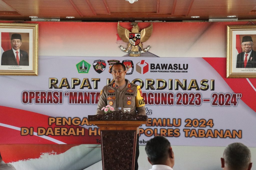 untuk secara bersama-sama kita melaksanakan pengamanan rangkaian tahapan pemilihan umum tahun 2023-2024 sehingga situasi kamtibmas di Kabupaten Tabanan tetap aman dan kondusif.