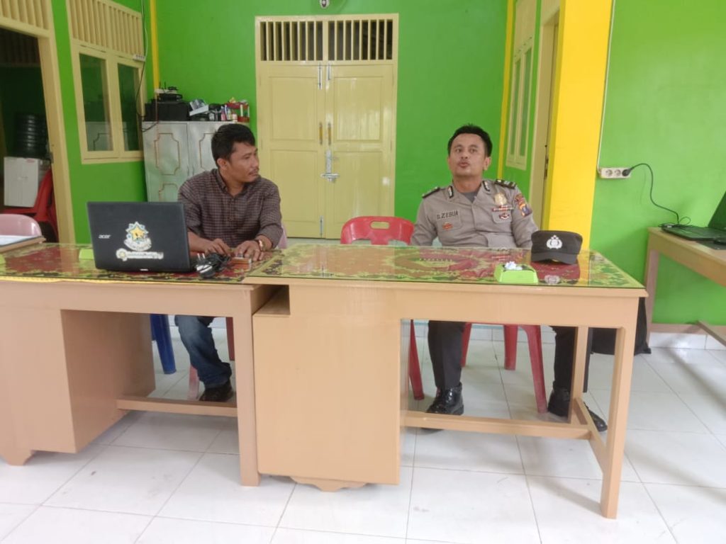 Ps. Kanit Binmas Polsek Idanogawo Aiptu D. Zebua, SH., berdialog langsung dengan Kepala Desa Bobozioli Loloana’a yang sedang berada di Kantor Balai Desa bersama dengan Aparat Desa Lainnya.