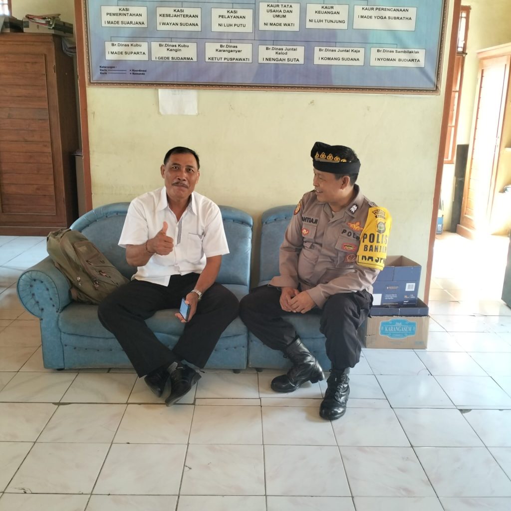Polsek Kubu, Jalin tali silaturahmi hubungan yang Harmonis guna lebih kedekatan dengan warga, Polisi Banjar Dinas Kubu Kangin Desa Kubu Aiptu I Nyoman Santiaji melaksanakan giat kunjungan dan temui Kawil Kubu Kangin I Gede Sudarma du Kantor Desa Kubu, Rabu (25/10/2023)
