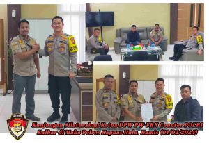 Ketua DPW PW-FRN Counter POLRI Kalbar Rabi, didampingi Wakil Sekretaris DPW PW-FRN, Jakaria Amid melakukan kunjungan perdana di Mako Polres Kapuas Hulu dan di sambut langsung oleh Kapolres Kapuas Hulu, AKBP Hendrawan, S.I.K., M.H. didampingi Kasibid Humas Polres Kapuas Hulu, AKP Dony. Kamis, (01/02/2024).