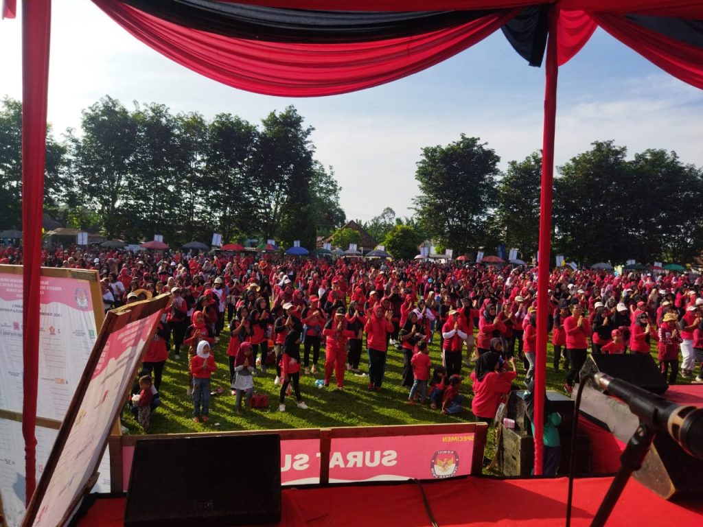 Dalam sambutan nya bapak Yudi fratama selaku anggota dprd musi rawas, dari fraksi PARTAI DEMOKRASI INDONESIA PERJUANGAN (PDI.P)dan mencalonkan diri lagi anggota DPRD musi rawas Dari partai PDI. P mengajak seluruh peserta senam sicita untuk mendukung kembali.beserta pilihannya pada tanggal 14 februari 2024 kedepan. Untuk dprd no. 1 Yudi fratama sh. Dprd prov.no 5 Ir richardo dan RI no 1 yulian gunhar.