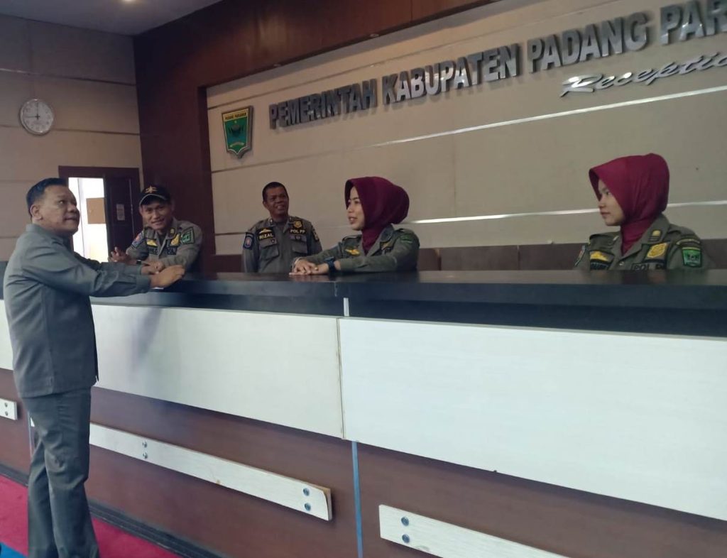 Kasat PP dan Damkar Kabupaten Padang Pariaman Rifki Monrizal, SH melakukan inspeksi mendadak terhadap anggotanya yang diperbantukan di resepsionis Kantor Bupati Padang Pariaman yang terletak di Parikmalintang. Sebagai pintu masuk di kantor Bupati, petugas Satpol PP harus menunjukkan kesan yang baik terhadap pengunjung yang datang.