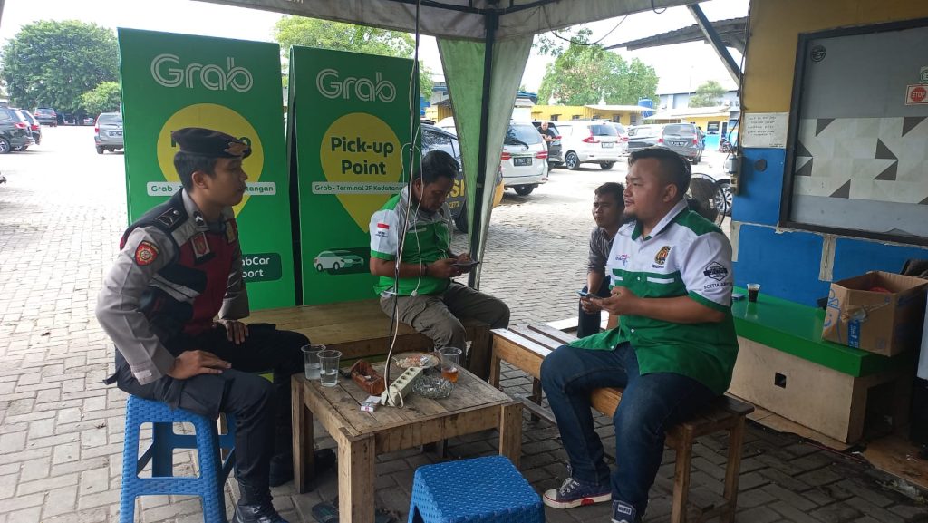 TANGERANG,perskpknews.com – Personel Satuan Samapta Polresta Bandara Soekarno-Hatta (Soetta), Tangerang menyambangi salah satu pool taksi di wilayah Sheraton pada Minggu (28/4).