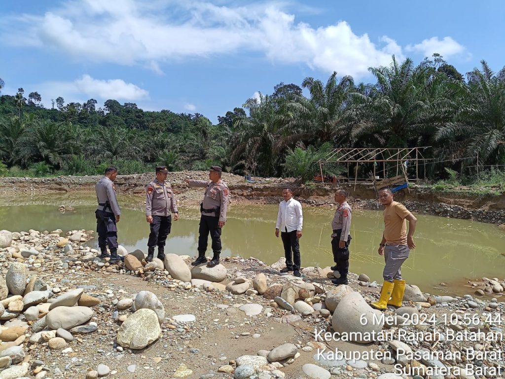 Terlihat dari Polsek Ranah Batahan yang dipimpin langsung oleh Kapolsek AKP Yuliarman beserta anggota, melakukan pengecekan dan patroli disejumlah titik yang diduga adanya aktivitas PETI di pinggiran sungai Batang Batahan, Jorong Paninjauan Nagari Batahan, Kecamatan Ranah Batahan, Kabupaten Pasaman Barat, Senin (6/5/2024).