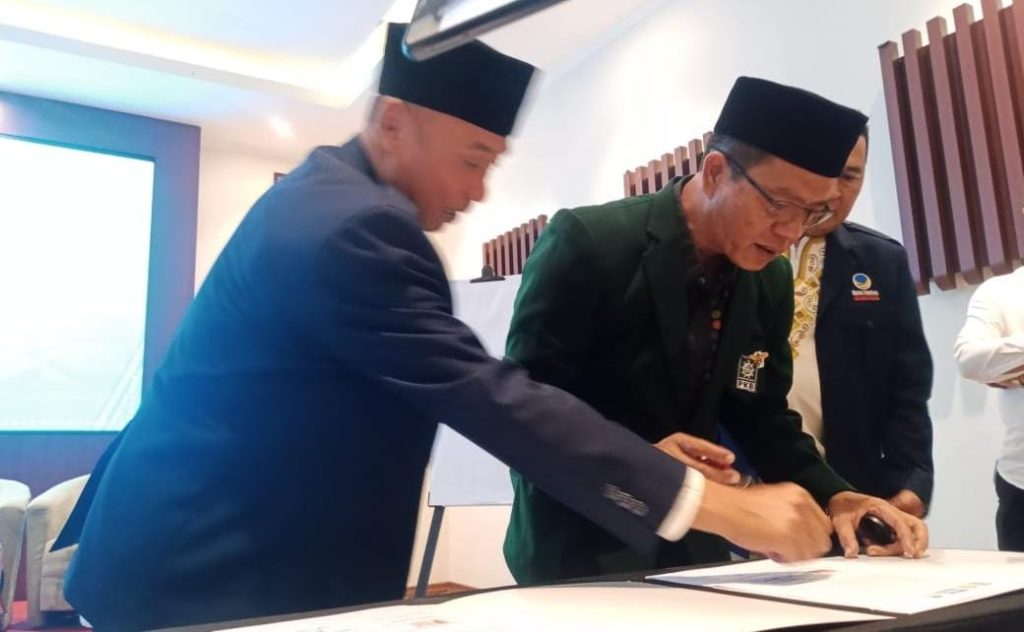 KAB BANDUNG – Empat partai yang tergabung dalam koalisi Bedas yakni PKB, Nasdem, Demokrat dan Partai Gerindra secara resmi melaksanakan penandatanganan nota kesepahaman koalisi untuk Pilkada Kabupaten Bandung 27 November 2024 mendatang.