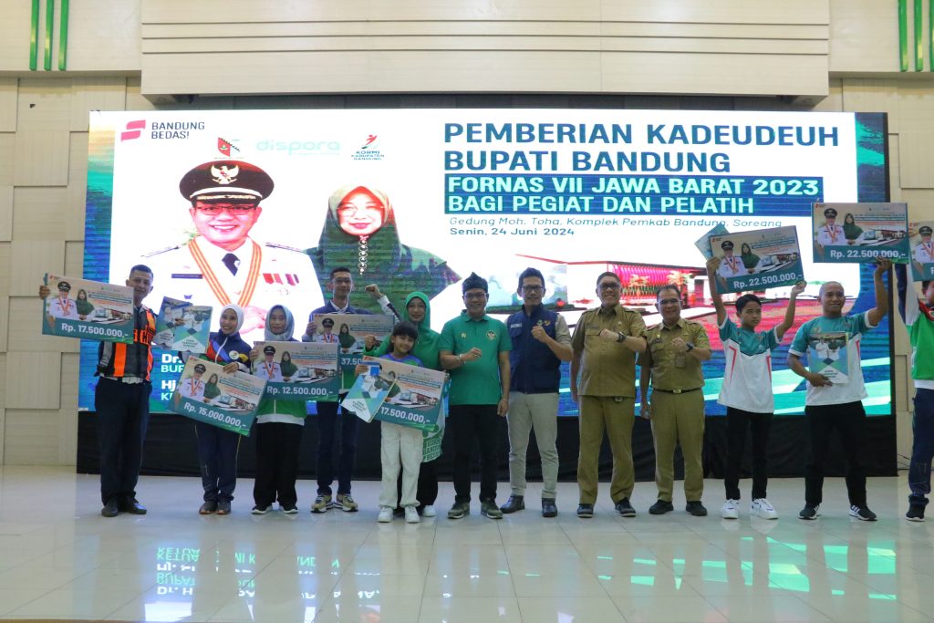 KAB. BANDUNG – Pemerintah Kabupaten (Pemkab) Bandung menggelontorkan anggaran sebesar Rp 1,327 miliar untuk pemberian uang kadeudeuh kepada para penggiat dan pelatih berprestasi pada ajang Festival Olahraga Masyarakat Nasional (FORNAS) VII tahun 2023 di Provinsi Jawa Barat. Pemberian uang kadeudeuh ini pertama di Indonesia.