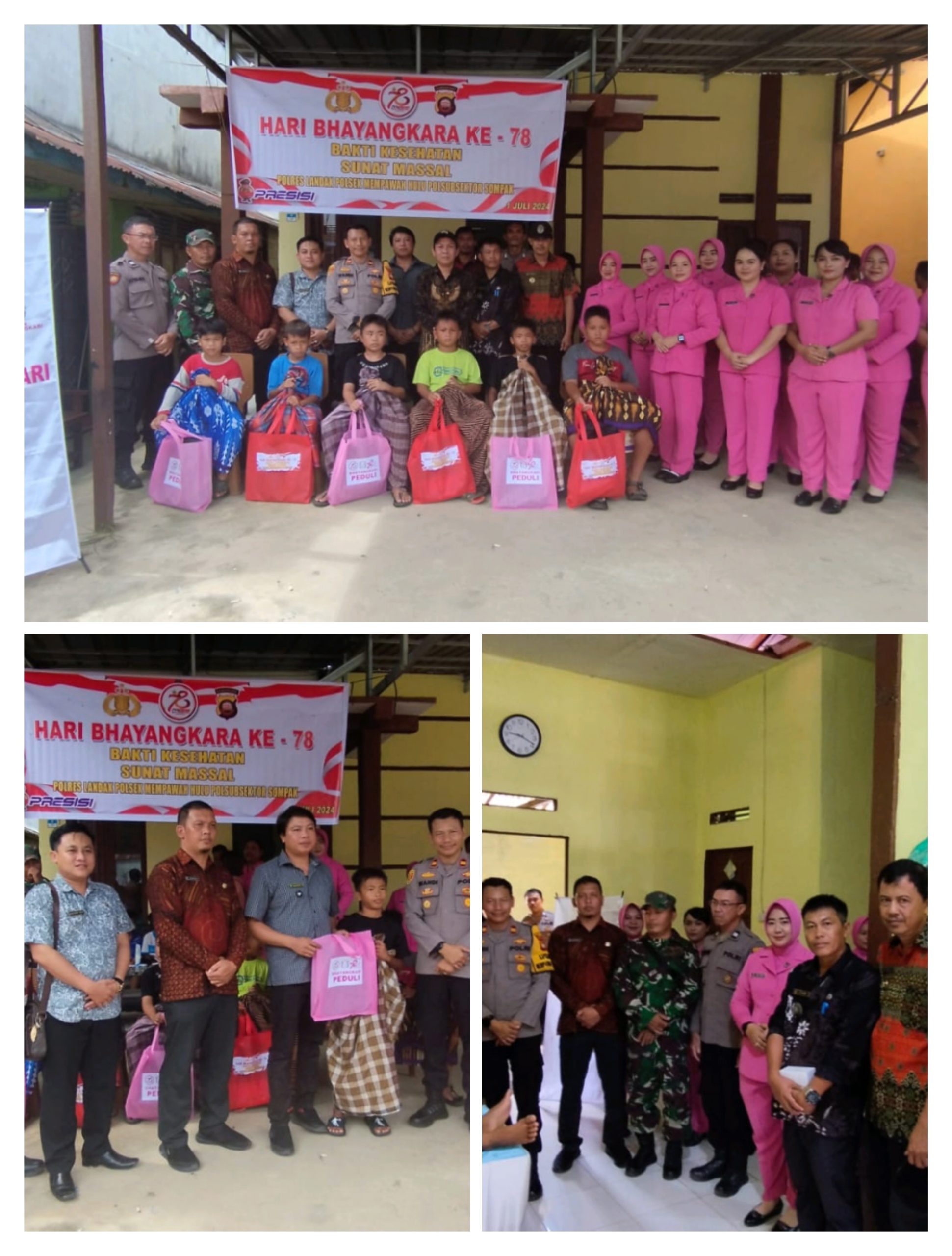 Pada rangkaian HUT Bhayangkara ke 78 tahun 2024 ini kegiatan sunatan massal melibatkan tenaga kesehatan dari Puskesmas Sompak, yang awalnya direncanakan diikuti 30 anak, tetapi tingginya animo masyarakat sehingga menjadi 42 anak yang mengikuti kegiatan sunatan massal tersebut. Ungkapnya