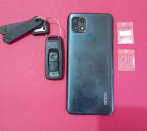 Pada saat dilakukan penggeledahan badan, ditemukan satu buah plastik klip transparan berisikan kristal diduga narkotika jenis shabu. Selain itu, saat dilakukan penggeledahan sepeda motor merk Honda Scoopy warna putih, ditemukan satu buah plastik klip transparan kosong dan satu unit handphone merk OPPO A15 warna mystery.