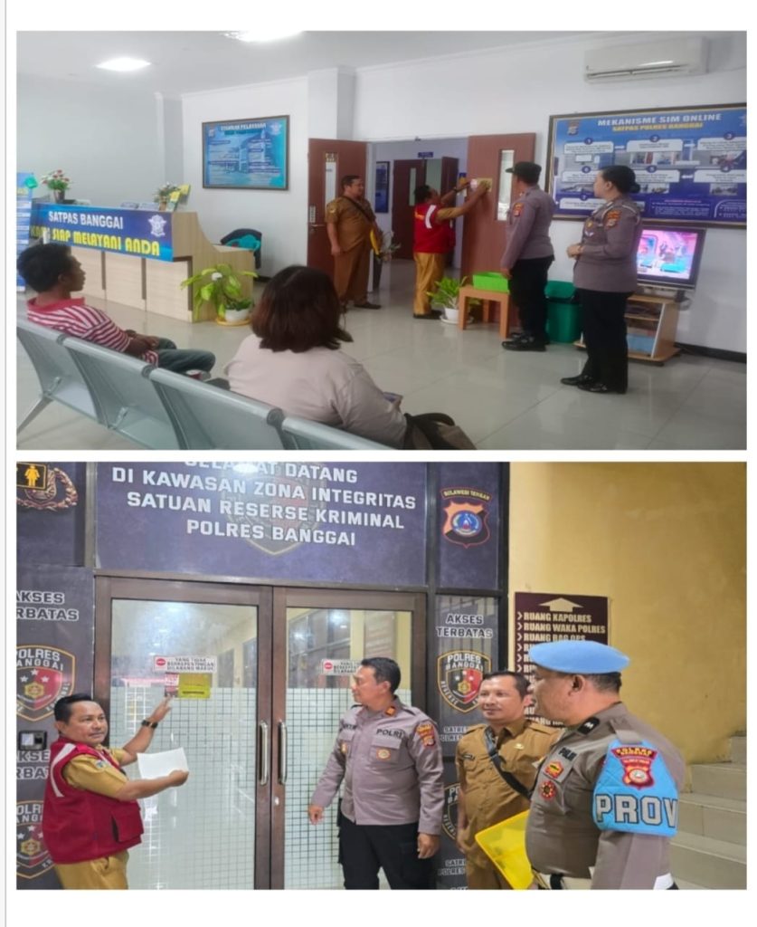 Tim Satgas Saber Pungli Kabupaten Banggai tahun 2024, menempelkan stiker berisi himbauan Stop Pungli tersebut di ruangan SKCK dan SATPAS di Mapolres Banggai, Kantor Dinas Sosial serta Kantor Pertanahan di kompleks perkantoran Bukit Halimun, Luwuk Selatan, Selasa (9/7/2024) pagi.