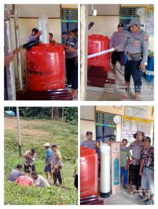 Polsek Ella Hilir Polres Melawi Polda Kalbar – Surau Nurul Hidayah Dusun Popai Desa Popai mendapat bantuan sosial pembangunan sumur bor dan sarana filterisasi air bersih dari Polsek Ella Hilir. Lokasi titik sumur bor dan pemasangan mesin di sekitar lapangan bola Laba’ Bertuah Desa Popai.