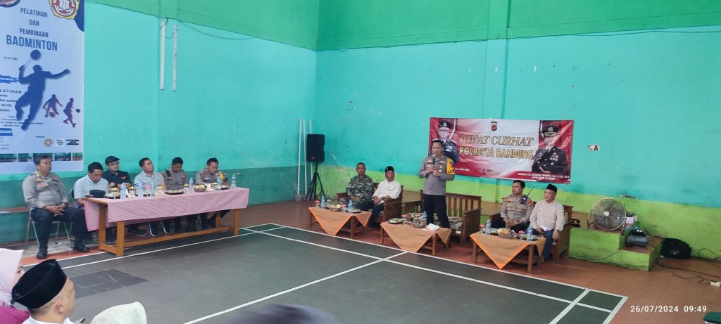 KAB. BANDUNG – Demi terjalin sinergitas antara Kepolisian dengan birokrasi pemerintahan utamanya dengan elemen masyarakat lainnya. Polresta Bandung adakan giat “Jum’at Curhat”. Giatan tersebut dilaksanakan Polsek Cimaung, bertempat di GOR Desa Cipinang, Kec.Cimaung Kab. Bandung. Jum’at 26/7/2024.