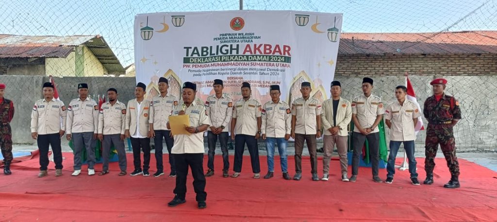 *Sumatera Utara,* Jelang tahapan pelaksanaan Pemilihan Kepala Daerah (Pilkada) yang dilaksanakan pada 27 November 2024 mendatang, Pimpinan Wilayah Pemuda Muhammadiyah Sumatera Utara (PW Pemuda Muhammadiyah Sumut) gelar tabligh akbar dan deklarasi Pilkada damai 2024.