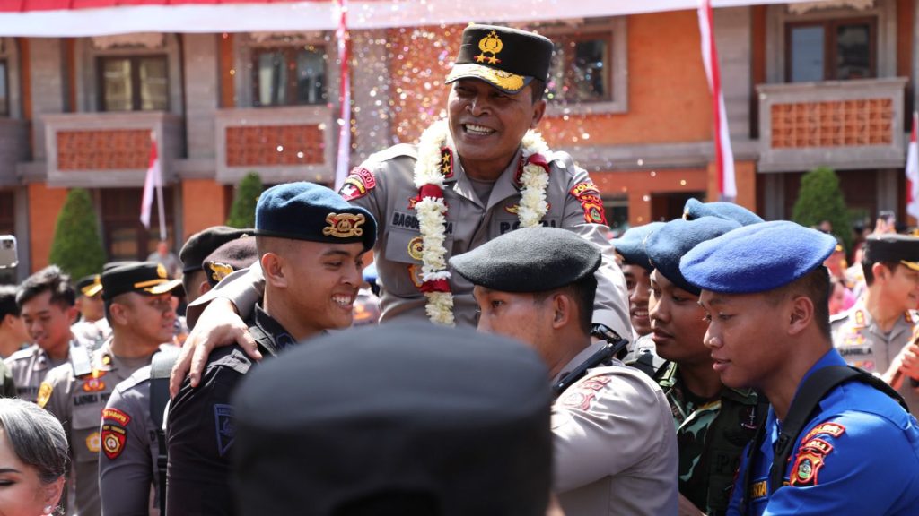 Kapolda Bali Irjen Pol Daniel Adityajaya, S.H., S.I.K., M.Si., mengantar keberangkatan Irjen. Pol. (Purn). Ida Bagus Kade Putra Narendra, S.I.K., M.Si., yang telah memasuki masa purna tugas yang sebelumnya menjabat sebagai Kapolda Bali.