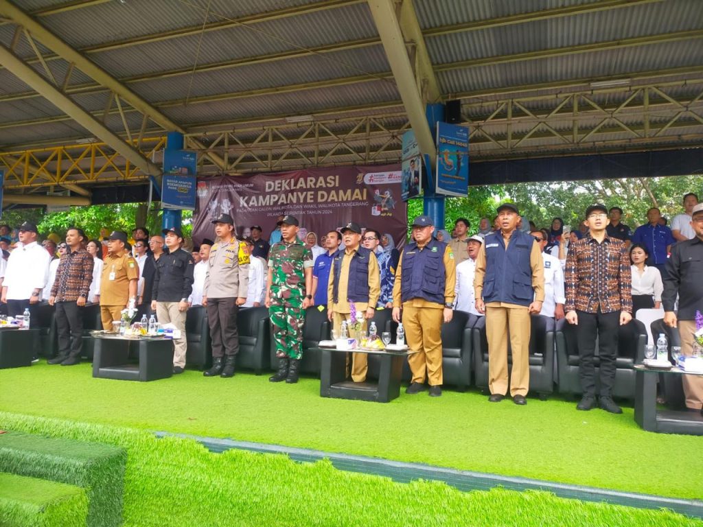 Deklarasi kampanye pilkada damai 2024, tahun ini Berlangsung di Alun-alun Ahmad Yani, Kota Tangerang, Banten.