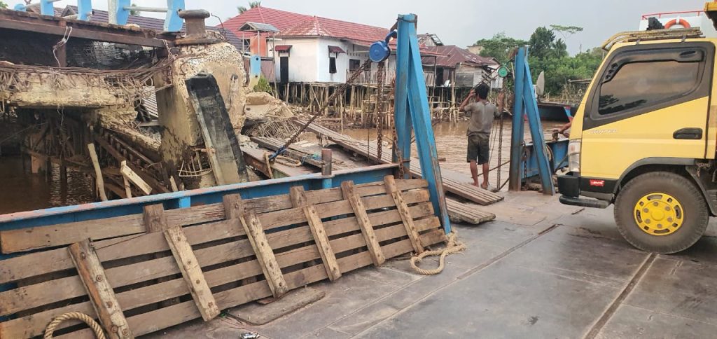 Pelabuhan Kapal Fery Mintin Yang Terletak Di RT.03 Desa Mintin Kecamatan Kahayan Hilir Kabupaten Pulang Pisau Provinsi Kalimantan diduga rusak parah,