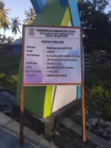 – jalan rabat beton untuk desa waepure (panjang 150 .cm lebar 5.m di bangun bertahap ,dua kali dari anggaran dana desa. DD tahun 2024