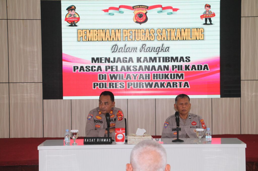 PURWAKARTA – perskpknews.com,Polres Purwakarta melalui Satuan Pembinaan Masyarakat (Binmas) menggelar pembinaan Ketua Satuan Keamanan Lingkungan (Kasatkamling) dalam rangka menjaga situasi kamtibmas pasca pelaksanaan Pilkada tahun 2024, Pada Selasa, 31 Desember 2024.