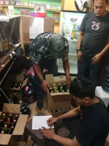 “Alhamdulillah, dari hasil razia miras, anggota personel unit Reskrim berhasil mengamankan sebanyak lima puluh tujuh (57) botol miras berbagai merk sebagai barang bukti (BB) berikut penjualnya Sdra UF yang nantinya para penjual miras ini akan kami lakukan pembinaan dan dikenakan pidana ringan.