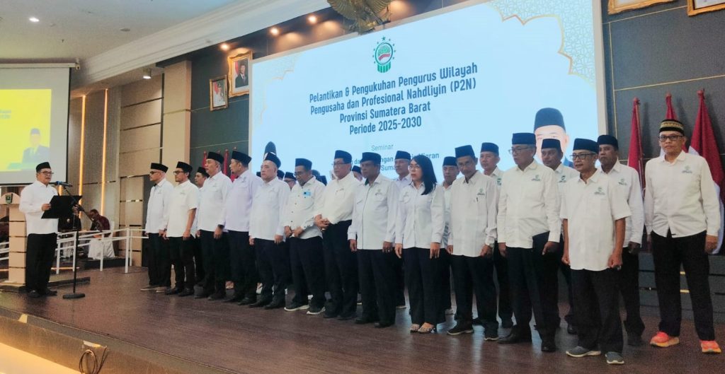 Ketua Umum Pengurus Pusat Perkumpulan Pengusaha dan Profesinal Nahdliyin (P2N) H. Alven Stony lantik pengurus P2N Provinsi Sumatera Barat, Selasa (25/2/2025) di Gubernuran Sumatera Barat Jalan Jenderal Sudirman Padang. SK kepengurusan P2N Sumbar dibacakan Sekretaris Jenderal Pengurus Pusat P2N Adi Widodo.