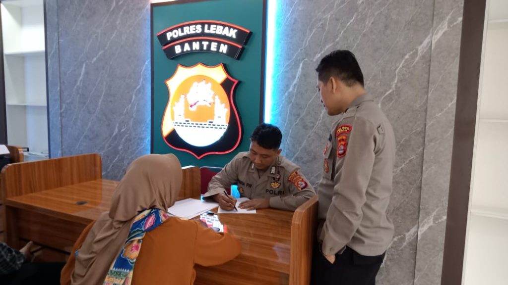 Petugas SPKT polres. Lebak Bripka Andra Pratama Wibowo