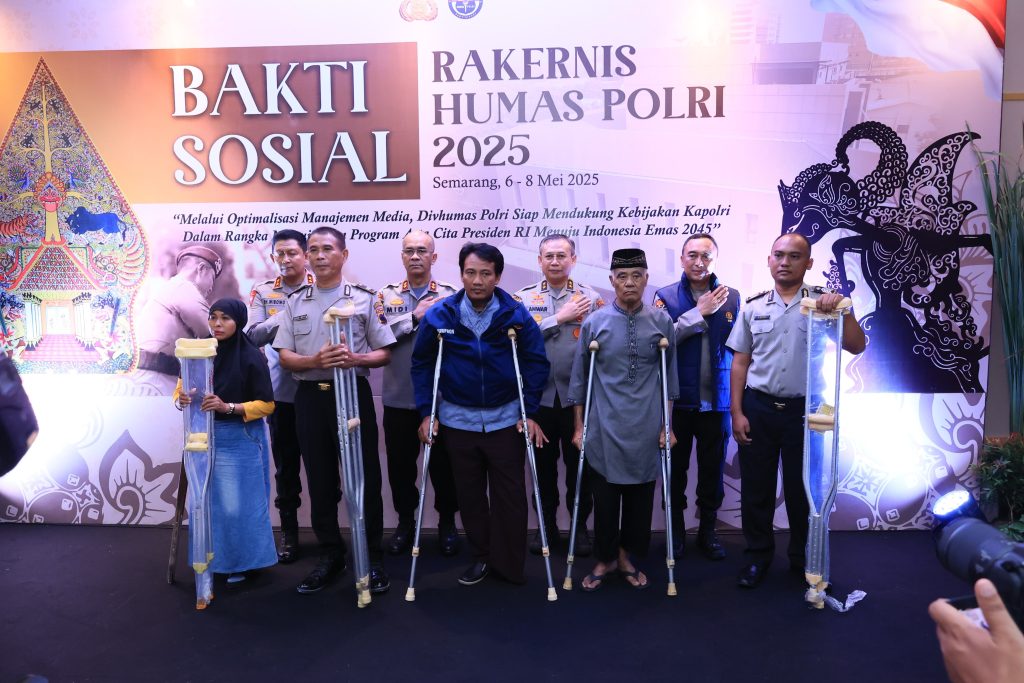 Sebelum rangkaian Rakernis dimulai, para pejabat tinggi Polri menyerahkan langsung bantuan sosial berupa 4 unit kursi roda dan 6 pasang kruk (tongkat bantu) kepada anggota Polri dan masyarakat yang membutuhkan, serta memberikan tali asih kepada 50 anak yatim piatu dari Panti Asuhan Anak Nurul Mursyid.