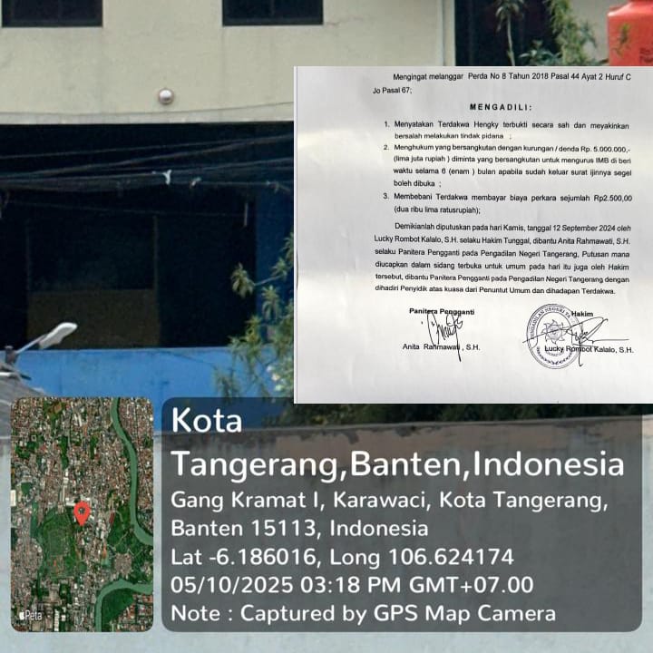 FEFI PLASTIK Masih beraktivitas sampai saat ini, sabtu 10 mei 2025 dari pantauan awak media. Diketahui pabrik biji plastik yang sudah disegel dan disidang, Hengky sebagai pemilik pabrik dinyatakan bersalah oleh Pengadilan Negeri Tangerang dengan Hasil Putusan sidang Nomor 24/Pid.C/2024/PN Tng.