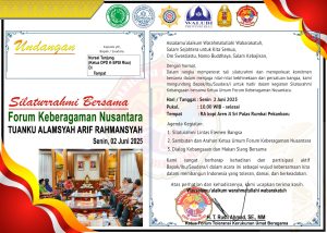 Pekanbaru, 2 Juni 2025 – Dalam semangat menjaga kebhinekaan dan mempererat persatuan bangsa, sejumlah elemen masyarakat lintas organisasi berkumpul dalam acara Silaturahmi Lintas Elemen Bangsa yang digelar di RA Kopi Aren, Jalan Sri Palas, Rumbai, Kota Pekanbaru, Senin pagi. Kegiatan ini diinisiasi oleh Ketua Forum Toleransi Kerukunan Umat Beragama (FTKUB), H.T. Rusli Ahmad, S.H., M.H., bersama Ketua Forum Keberagaman Nusantara (FKN), Tuanku Alamsyah Arif Rahmansyah Marbun.