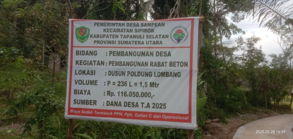 Demikian halnya di dusun poldung lombang desa Sappean kecamatan Sipirok Tapanuli Selatan,yang pemanfaatan dana desanya digunakan untuk membangun cor rabat agar jalan ke lokasi usaha pertanian masyarakat disana menjadi kian membaik,nyatanya oleh para pekerja yang dikomandani oleh Tim Pengelola Kegiatan (TPK) terkesan dilaksanakan asal jadi.
