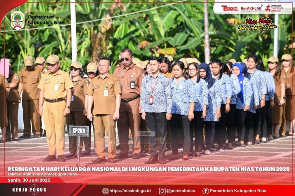 Nias, — Pers kpk tipikor news — Pemerintah Kabupaten Nias gelar Peringatan Hari Keluarga Nasional (HARGANAS) Ke-32 Tahun 2025, bertempat di Lapangan Upacara Kantor Bupati Nias. Senin, (30 Juni 2025).