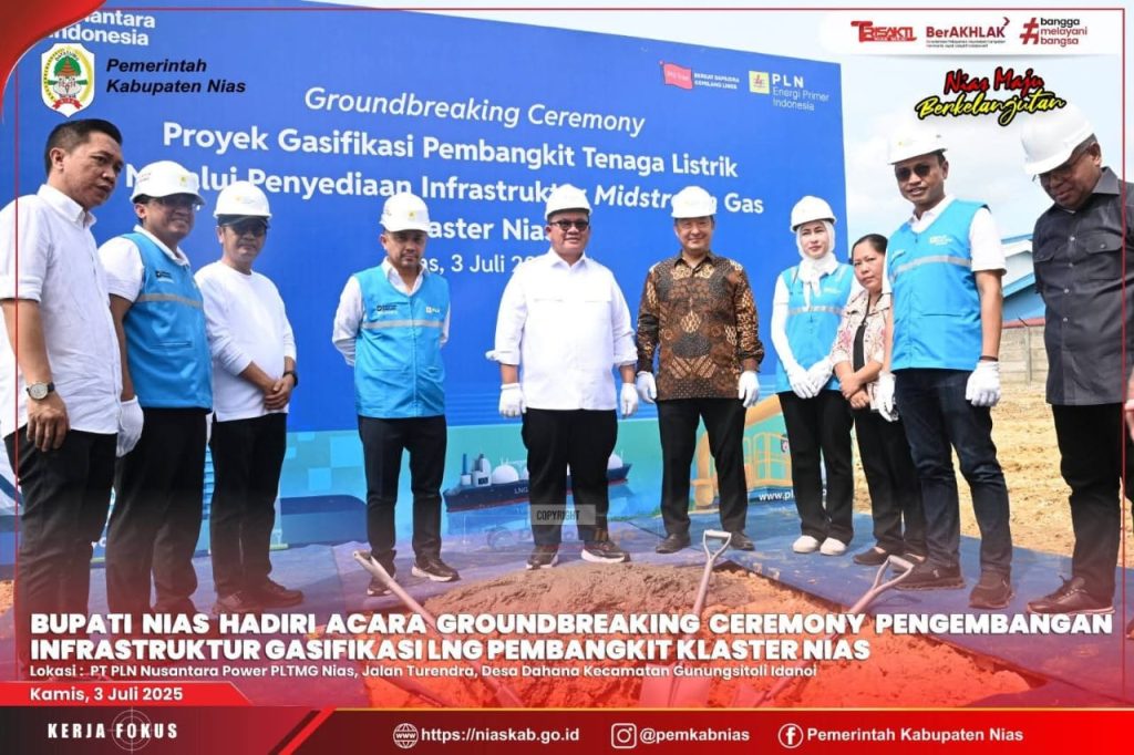Nias, — Pers kpk tipikor news — Bupati Nias Yaatulo Gulo, S.E., S.H., M.Si turut hadir pada acara Groundbreaking Ceremony Proyek Gasifikasi Pembangkit Tenaga Listrik melalui penyediaan Infrastruktur Midstream Gas Klaster Nias, bertempat di PT. PLN Nusantara Power PLTMG Nias. Kamis, (03 Juli 2025).