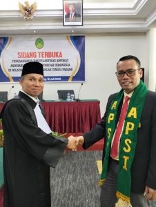 Padang, Jumat 18 Juli 2025 — Asosiasi Pengacara Syariah Indonesia (APSI) Sumatera Barat kembali menorehkan langkah penting dalam penguatan profesi hukum berbasis syariah. Sebanyak 18 orang pengacara resmi diangkat dan dilantik untuk berpraktik di wilayah hukum Pengadilan Tinggi (PT) Padang dalam sebuah sidang terbuka yang berlangsung di Hotel Daima, Jalan Sudirman, Padang.