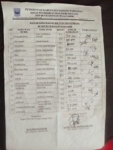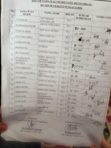 Laporan awal menyebutkan adanya daftar sumbangan yang mencantumkan nama wali murid, jumlah uang, dan tanda tangan, yang oleh sejumlah pihak dinilai tidak mencerminkan sumbangan sukarela. Format tersebut bahkan disebut menyerupai dokumen resmi yang mengarah pada indikasi pungutan terselubung.