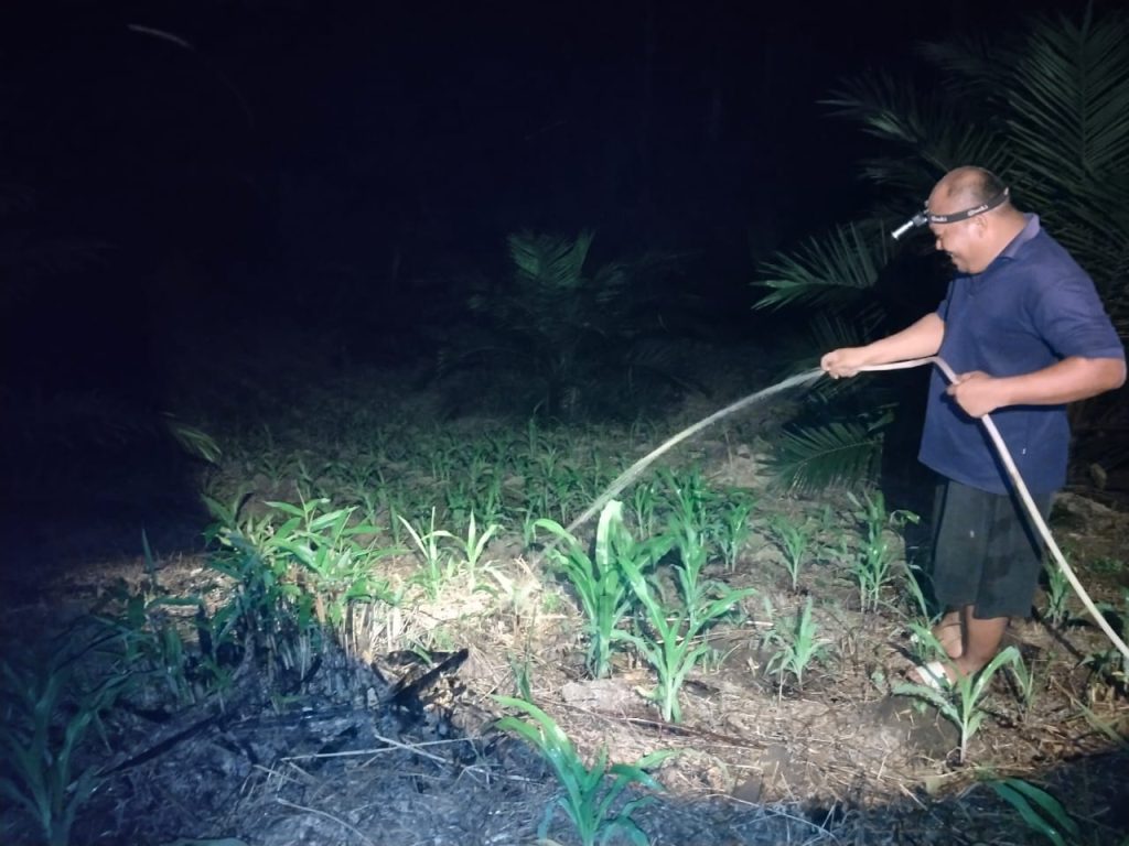 Polsek Sokan Polres Melawi Polda Kalbar – Kerja keras di lakukan personel Polsek Sokan di masa musim kering pasca penanaman jagung, langkah yang dilakukan dengan upaya penyiraman pada sore hingga malam hari di lahan milik sdr Najib yang dikelola oleh Polsek Sokan dan Polisi Penggerak Ketahanan Pangan Aiptu Sunarmin, S.H, yang berada di Desa Potay Kecamatan Sokan, Jumat (8/8) petang.