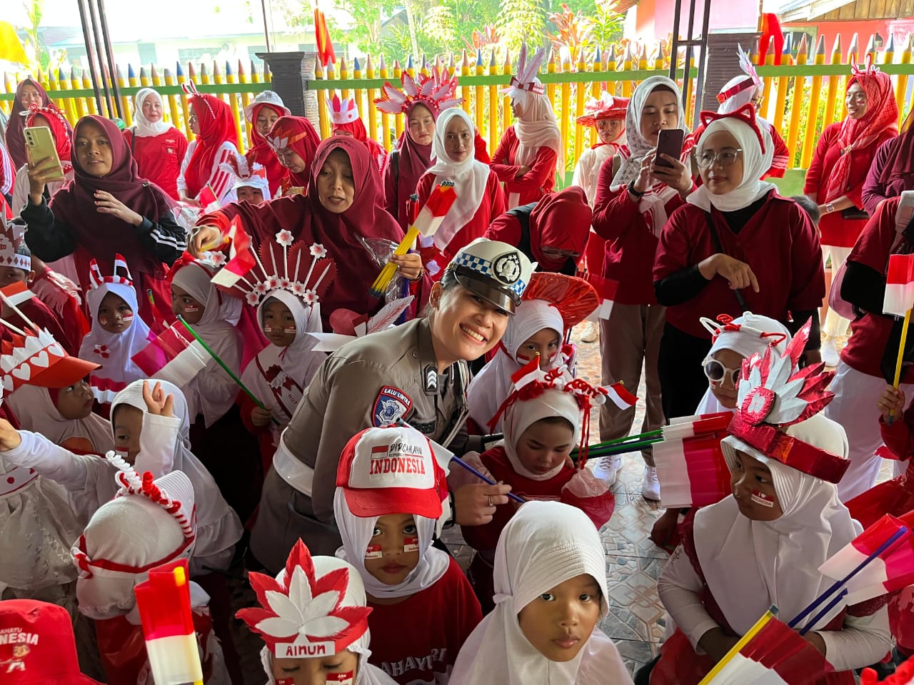 Polres Melawi Polda Kalbar – Meriah dan penuh keceriaan dalam naungan bendera merah putih di TK Aisyah Bustanul Atfal (ABA) Nanga Pinoh dalam kegiatan Polisi Sahabat Anak (PSA), Jumat (15/8)