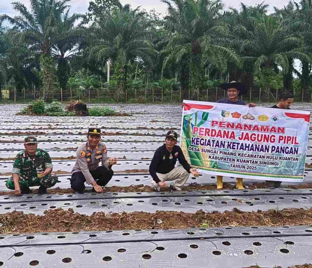Kuantan Singingi – Pemerintah Desa Sungai Pinang, Kecamatan Hulu Kuantan, bersama unsur Forkopimcam melaksanakan kegiatan penanaman jagung pakan/komposit secara monokultur di lahan desa seluas 0,7 hektar. Kegiatan ini digelar Kamis (4/9/2025) pagi sebagai bentuk dukungan terhadap Program Asta Cita Presiden Republik Indonesia dalam memperkuat ketahanan pangan.