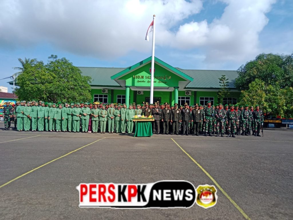 Pangkep perskpknews.com – Dalam rangka memperingati Hari Ulang Tahun ke-80 Tentara Nasional Indonesia (TNI), Komando Distrik Militer (Kodim) 1421/Pangkep menggelar upacara bendera secara khidmat di lapangan Markas Kodim 1421/Pangkep, Minggu (5/10/2025).