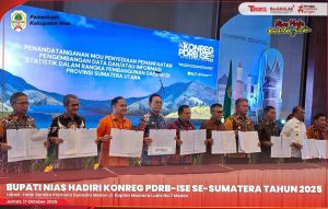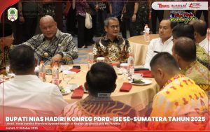 NIAS, — Pers kpk tipikor news — Bupati Nias Yaatulo Gulo, S.E., S.H., M.Si., menghadiri pelaksanaan Konsultasi Regional Produk Domestik Regional Bruto–Indikator Sosial Ekonomi (KONREG PDRB–ISE) se–Sumatera Tahun 2025, bertempat di Hotel Santika Premiere Dyandra, Jalan Kapten Maulana Lubis No. 7, Medan, Sumatera Utara. Jum’at, (17 Oktober 2025).
