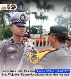 Gunungsitoli — Pers kpk tipikor news — Polres Nias menggelar Apel Gelar Pasukan Operasi Kewilayahan “Zebra Toba-2025” pada Senin, 17 November 2025, pukul 09.00 WIB, bertempat di Halaman Apel Polres Nias. Kegiatan ini sekaligus menandai dimulainya operasi penertiban lalu lintas yang berlangsung selama 14 hari, mulai 17 hingga 30 November 2025. Polres Nias menerjunkan 88 personel dalam pelaksanaan operasi di wilayah hukum Polres Nias.