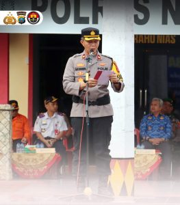 Apel dipimpin oleh Waka Polres Nias, Kompol S.K. Harefa, S.Pd., M.H., serta dihadiri unsur Forkopimda, Basarnas, TNI, Brimob, Danlanal, dan Pejabat Utama Polres Nias. Peserta apel terdiri dari peleton Perwira, peleton TNI, peleton Brimob, serta peleton gabungan fungsi Polres Nias bersama Basarnas dan Dinas Perhubungan.