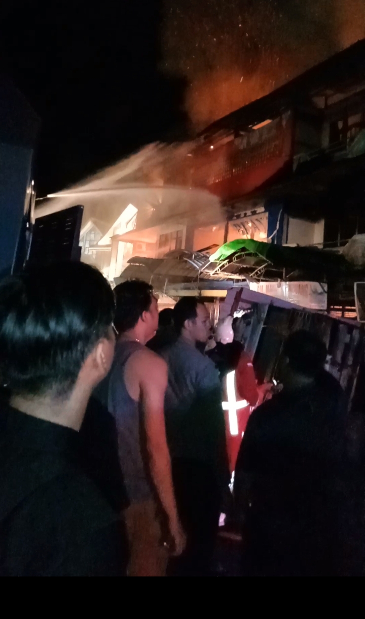 saat awak media melihat kobaran api Di Dekat tugu juang terjadi pada malam hari tanggal 25/12/2025 jam 20.30 wib, kobaran api sangat hebat melahap ruko lantai tiga mini market mitra buana. dan tokoh Elektronik.rumah makan Padang, tempat penjualan tiket marus,ludes terbakar,