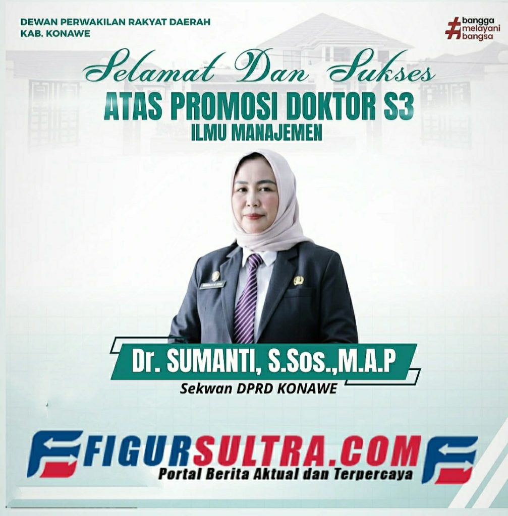 Dr. Sumanti, yang sebelumnya menjabat sebagai Sekretaris Dewan (Sekwan) Kabupaten Konawe, mengangkat judul disertasi “Pengaruh Nilai Kerja dan Budaya Organisasi terhadap Kreativitas Pegawai dimediasi oleh Knowledge Sharing (Studi pada Pegawai Sekretariat Daerah Kabupaten Konawe)”, yang menyoroti pentingnya nilai kerja, budaya organisasi, dan praktik berbagi pengetahuan dalam mendorong kreativitas aparatur sipil negara (ASN).
