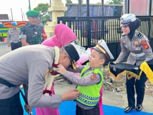 Prosesi penyambutan berlangsung dengan penuh khidmat. Kedatangan Kapolres Bungo bersama Ketua Bhayangkari Cabang Bungo disambut dengan pengalungan bunga oleh perwakilan Bhayangkari. Suasana semakin semarak dengan penampilan dari Satlantas Cilik Polres Bungo yang menampilkan atraksi baris-berbaris serta gerakan pengaturan lalu lintas yang memukau para tamu undangan dan peserta apel.